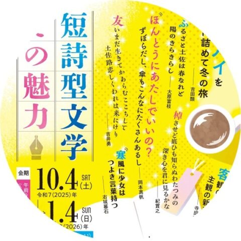 画像1 2025.09.14 一覧へ お知らせ 2026.02.03【お知らせ】2月25~26日こどものぶんがく室・授乳室は利用できません 2026.01.292月のおはなしキャラバン 2026.01.07『市原麟一郎 土佐民話資料集』刊行! 2025.12.201月のおはなしキャラバン 2025.10.29お城下文化の日(令和7年11月9日(日)) ひとことブログ 2026.02.05春を待つ、2月の木蓮 2026.01.21不思議な体験談 2026.01.08怖い文学展、準備中です! 2026.01.01新年ごあいさつ 2025.12.10師走を迎えて 文学Pickup 2026.01.07『市原麟一郎 土佐民話資料集』刊行! 2021.03.16【作品紹介】中脇初枝著『きみはいい子』 2020.11.19【資料紹介】 上林暁 ノート「ブランデン教授講義録」 2021.03.16【作品紹介】吉田類『酒場詩人の美学』 2021.01.11【作品紹介】有川ひろ著『倒れるときは前のめり』 展示・作家紹介 中山高陽 (1) 宮地佐一郎 (1) 吉田類 (3) 門田隆将 (1) やなせたかし (2) 横田稔 (1) 近現代の詩歌 (1) 現代の作家たち (1) その他(古典) (1) 小砂丘忠義 (1) 松谷みよ子 (1) 辻堂魁 (1) 畠中恵 (1) 近世文人 (8) 宮尾登美子 (9) 寺田寅彦 (13) 高浜虚子 (1) 司馬遼太郎 (1) 大岡昇平 (4) 井伏鱒二 (1) 吉井勇 (1) 浜田波静 (1) 若尾瀾水 (3) 北見志保子 (1) 橋田東声 (1) 島崎曙海 (1) 大江満雄 (1) 上田秋夫 (1) 片山敏彦 (1) 槇村浩 (1) 岡本弥太 (1) 横山充男 (1) 西村繁男 (1) 笹山久三 (1) 田島征彦 (1) 田島征三 (1) 中脇初枝 (10) 藤原緋沙子 (1) 有川ひろ (7) 西澤保彦 (1) 志水辰夫 (2) 嶋岡晨 (1) 山本一力 (2) 坂東眞砂子 (1) 倉橋由美子 (1) 清岡卓行 (2) 大原富枝 (1) 安岡章太郎 (1) 小山いと子 (1) 田宮虎彦 (2) 上林暁 (3) タカクラ・テル (1) 田中英光 (4) 森下雨村 (1) 馬場孤蝶 (2) 浜本浩 (1) 田岡典夫 (1) 田中貢太郎 (1) 大町桂月 (2) 黒岩涙香 (1) 田岡嶺雲 (1) 幸徳秋水 (1) 中江兆民 (1) 坂崎紫瀾 (2) 植木枝盛 (4) 宮崎夢柳 (4) 今村楽 (1) 鹿持雅澄 (1) 五山文学 (3) 紀貫之 (1) 所蔵資料紹介 (1)